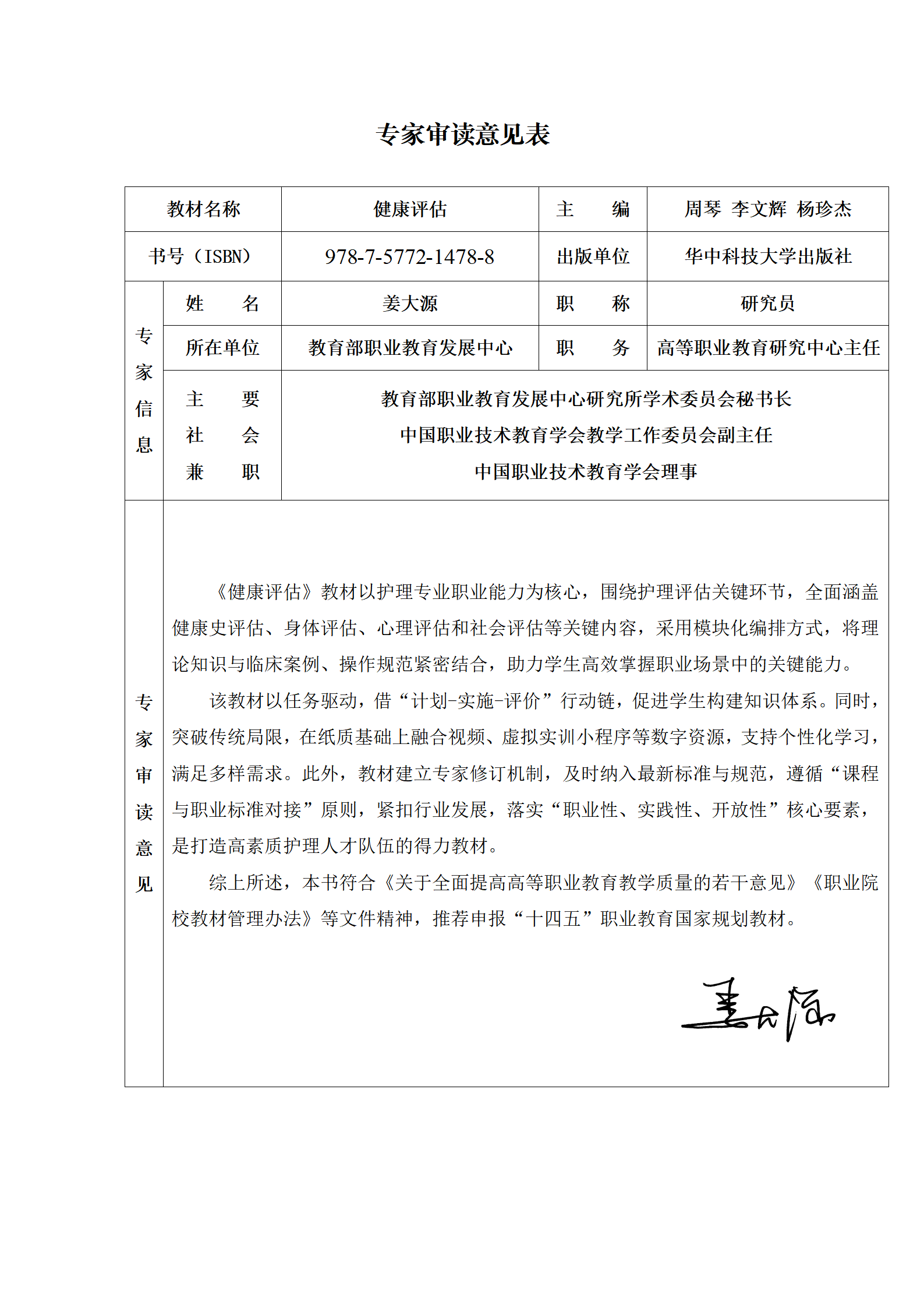 《健康评估》第二批“十四五”职业教育国家规划教材申报佐证资料.pdf